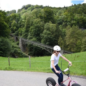 Wem es zu Fuss zu gemächlich ist, der sollte die rasante Fahrt mit dem Trotti Bike ausprobieren. Ein Erlebnis für jung und alt. Geniesse die drei Kilometer lange Fahrt mit dem Trotti Bike von Mägisalp nach Bidmi .