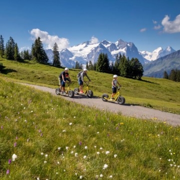 Sie fahren mit der idyllischen Gondelbahn von Isenfluh in die schöne Bergwelt mit Aussicht auf Eiger, Mönch und Jungfrau. Oben in Sulwald erwartet Sie ein charmantes Restaurant, das Sulwaldstübli, wo die „Monstertrottis“ stationiert sind. Die abenteuerliche Abfahrt auf dem Forstweg zurück ins Tal wird garantiert zum Erlebnis.